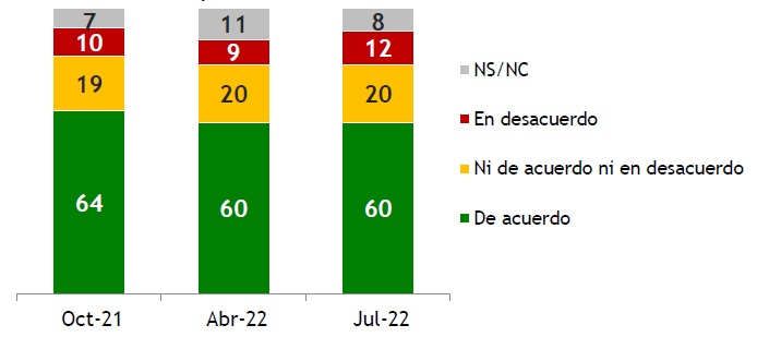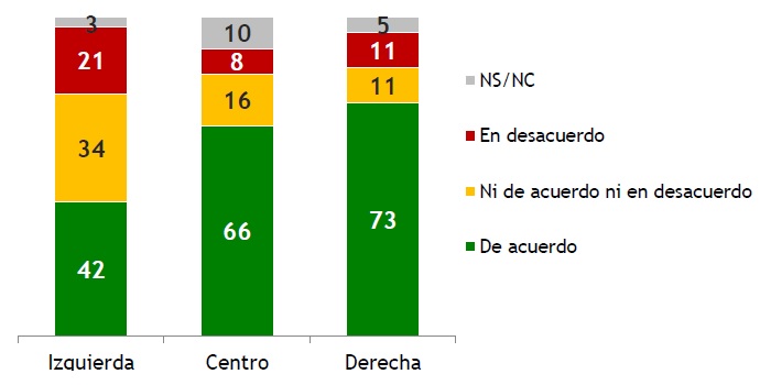 Como es habitual, las opiniones están influidas por la ideología. En la “derecha y centro-derecha” el apoyo es muy elevado (73%), y en el “centro” también, casi con la misma intensidad (66%). En cambio, entre los identificados con la “izquierda” y “centro-izquierda” el escenario es más dividido (aunque también de balance favorable).