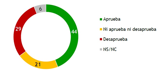 ¿Cuál es la evaluación que los montevideanos realizan sobre su trabajo? Consultados específicamente sobre el punto a fines de abril, 44% manifestó aprobar el desempeño de Carolina Cosse como intendenta y un 29% desaprobarlo, al tiempo que 21% sostuvo posiciones intermedias y 6% no emitió opinión. De esta forma Cosse llega al año y medio de gestión con un saldo neto favorable de +15, producto de la resta directa entre la aprobación y la desaprobación.