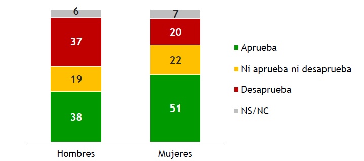 En segundo lugar, los juicios sobre el desempeño de Cosse también varían significativamente en función del sexo de los entrevistados. Entre las mujeres el balance de Cosse es holgadamente positivo (51% de aprobación contra 20% de desaprobación), mientras que entre los hombres las opiniones están prácticamente equilibradas (38% de aprobación contra 37% de desaprobación).