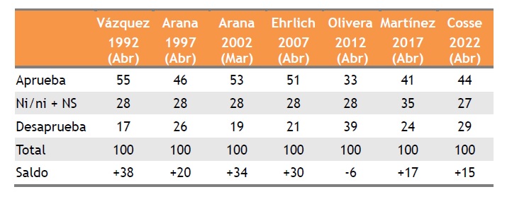 Hace más de 30 años que el Frente Amplio gobierna en Montevideo, y en este tiempo han pasado seis intendentes electos distintos (incluyendo a Cosse), con un único caso que repitió dos períodos que fue el de Mariano Arana. Cuando se analiza la evaluación que estos Intendentes han tenido a lo largo del tiempo en momentos similares, nos encontramos con situaciones heterogéneas, aunque la mayor parte del tiempo, a esta altura del período, los intendentes recibían evaluaciones con balance positivo.