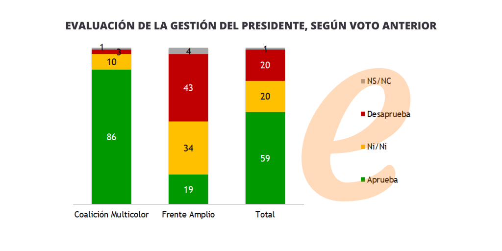 El Presidente Luis Lacalle Pou culminó a fines de julio su primer cuatrimestre al frente del gobierno nacional, manteniendo un elevado nivel de aprobación entre los uruguayos. Casi seis de cada diez (59%) aprueba su desempeño, mientras que 20% tiene opiniones intermedias y 20% lo desaprueba.
