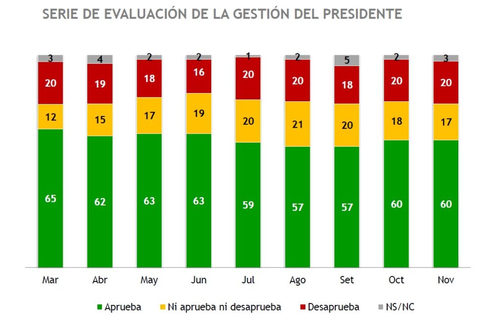 Lacalle Pou con 60% de aprobación al terminar noviembre