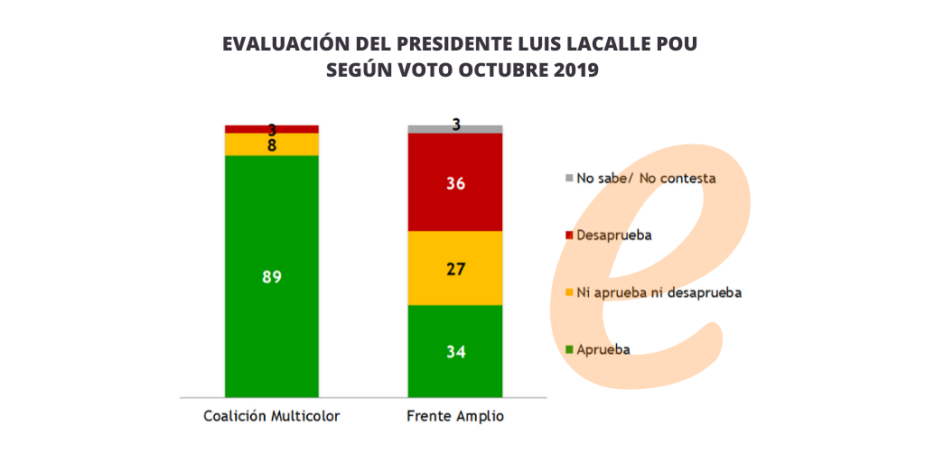 Las visiones sobre el trabajo del Presidente reciben un apoyo casi monolítico dentro de los votantes de la Coalición Multicolor (casi 9 de cada diez), y opiniones divididas entre los votantes del Frente Amplio. Estas dos características han permanecido también estables en estos tres primeros meses de gobierno.