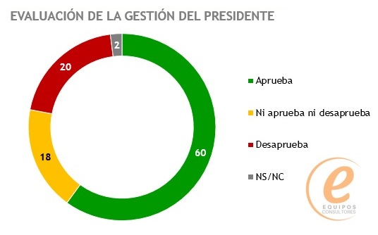 A finales de octubre y principios de noviembre, el Presidente Lacalle Pou mantiene una evaluación mayoritariamente positiva por parte de la ciudadanía. Seis de cada diez uruguayos (60%) aprueba la forma en que el Presidente se está desempeñando, y dos de cada diez (20%) la desaprueba, mientras que el resto mantiene opiniones intermedias (18%) o no opina (2%).