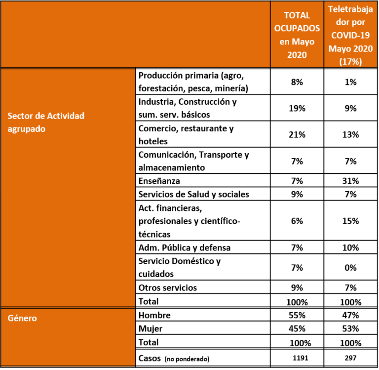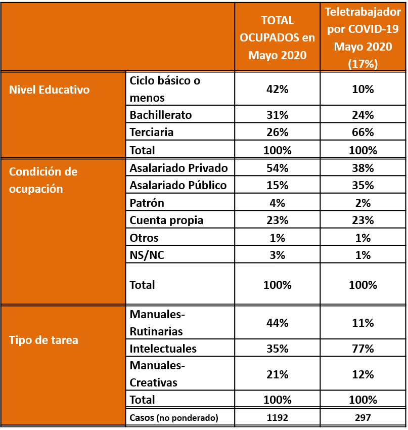 Tabla 1: Características de los teletrabajadores por COVID-19. Uruguay, mayo 2020