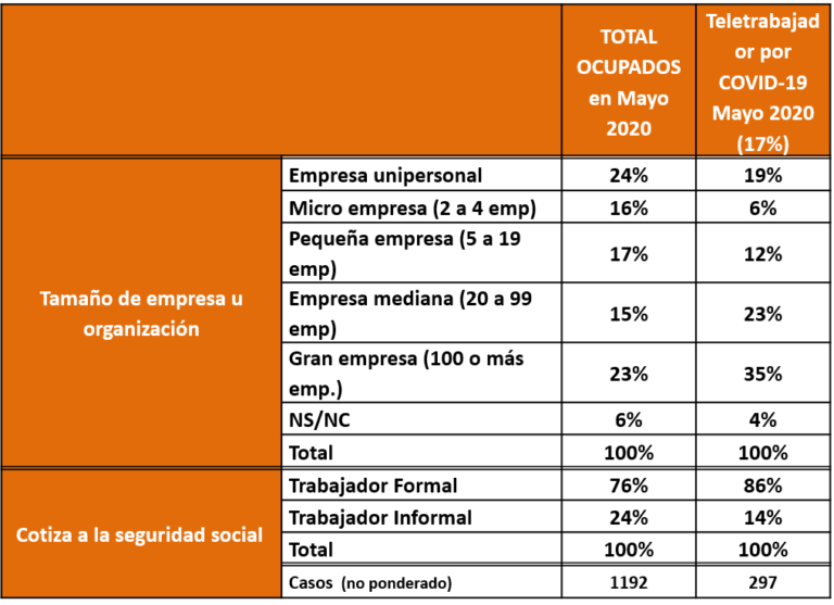 Tabla 2: Características de los teletrabajadores por COVID-19. Uruguay, mayo 2020