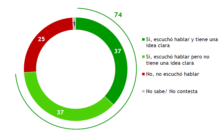 Se preguntó a los encuestados si escucharon hablar de la Transformación Educativa que propone el gobierno. Menos de cuatro de cada diez uruguayos (37%) dicen que escucharon hablar y que tienen una idea clara de la reforma, y otro tanto (37%) tiene un conocimiento más difuso: afirma que escuchó hablar, pero que no tiene una idea clara sobre el tema. Adicionalmente, uno de cada cuatro uruguayos (25%) no ha escuchado hablar sobre esta reforma y el restante 1% no opina. Los resultados muestran, entonces, situaciones muy heterogéneas. El tema está teniendo un protagonismo importante en la agenda (en suma, 74% escucharon hablar del tema), pero el conocimiento específico de la reforma se reduce a la mitad de esta cifra.